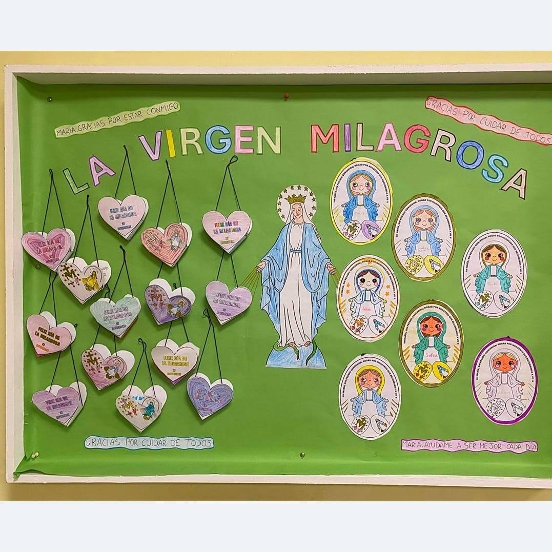 Los alumnos de 3° de Primaria ya han preparado en su clase un mural muy bonito mientras aprenden sobre la MEDALLA MILAGROSA, una de las