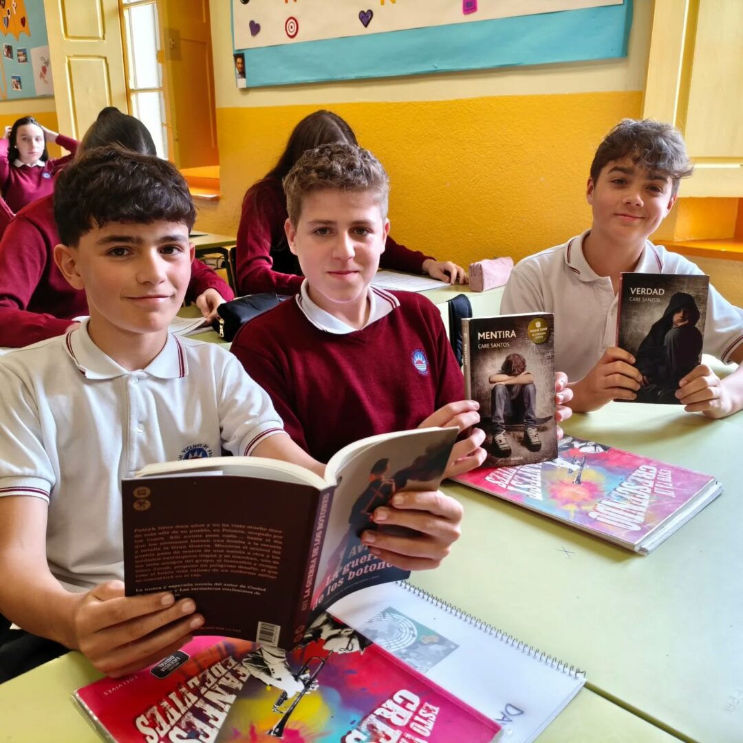 Los alumnos de 2°ESO nos enseñan sus libros de lectura recomendados en clase de LENGUA y LITERATURA. La trilogía MENTIRA, de Care Santos, formada por