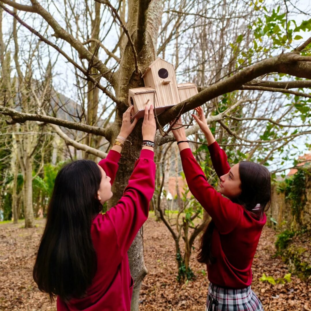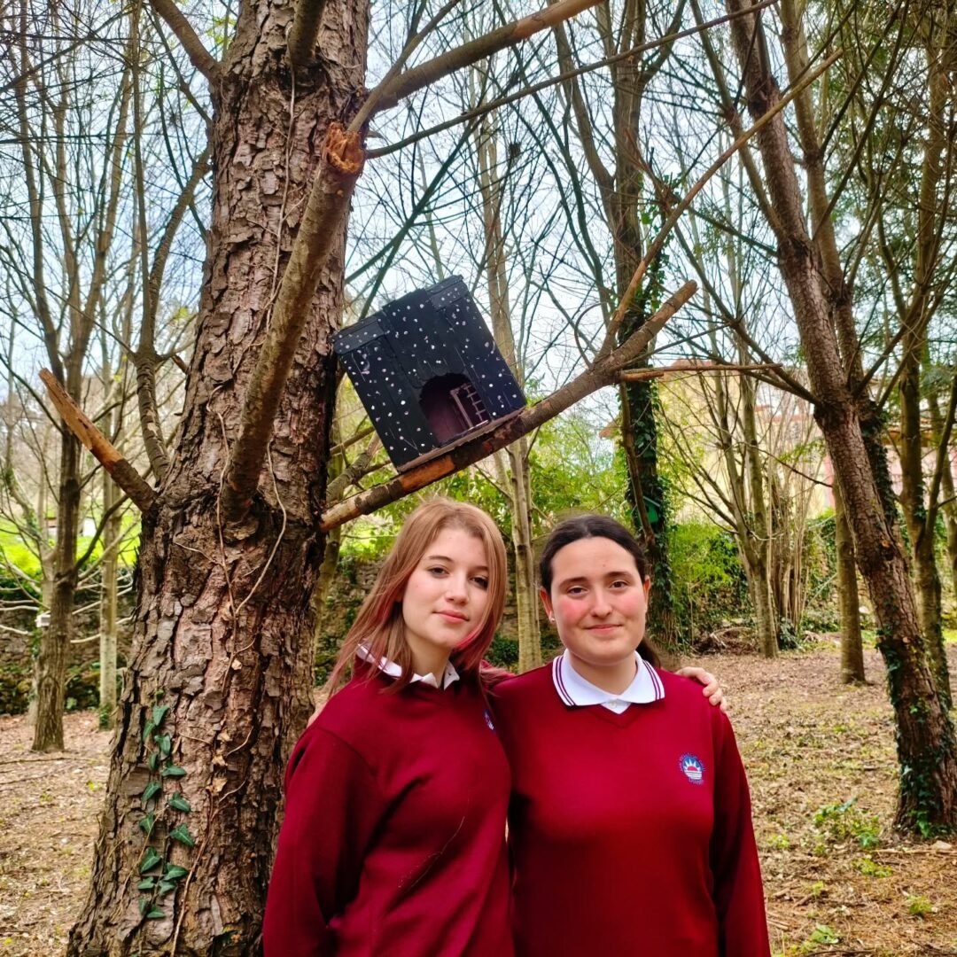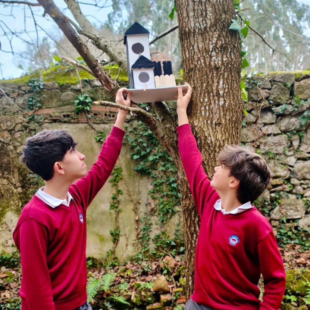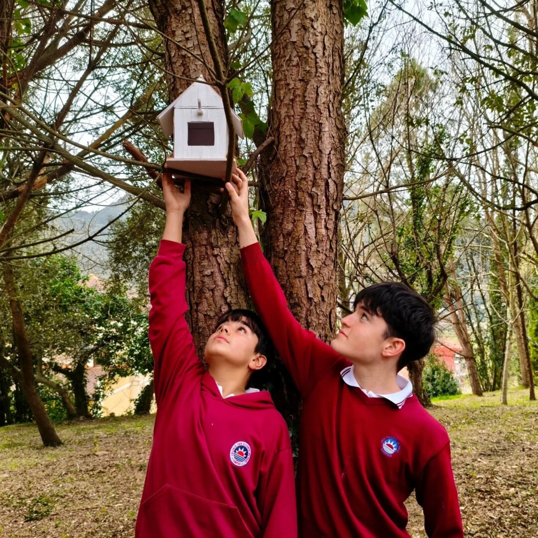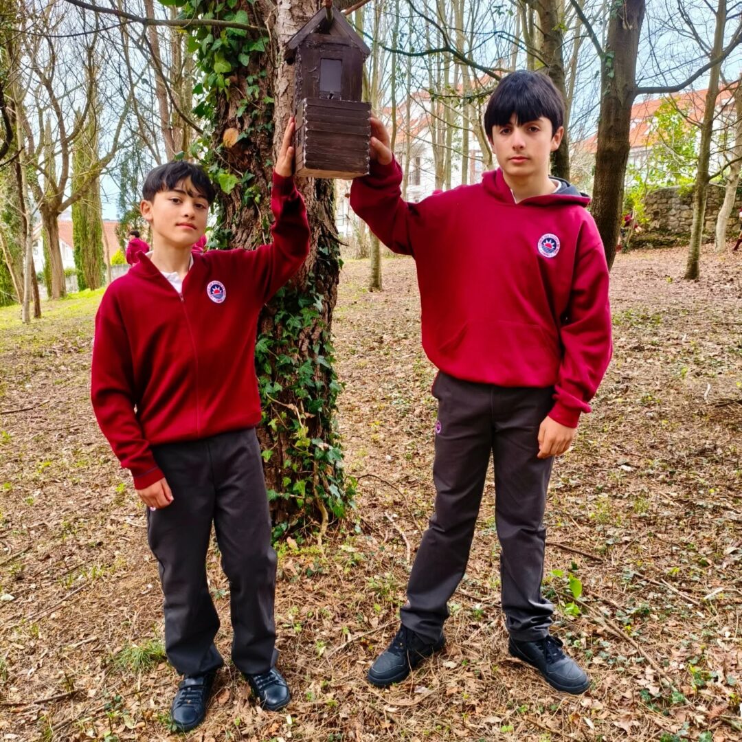 Una vez finalizada la construcción de las casitas, nos fuimos de excursión al bosque del cole. Colocamos las casitas en distintos árboles para que esta primavera los pájaros hagan sus nidos en ellas.