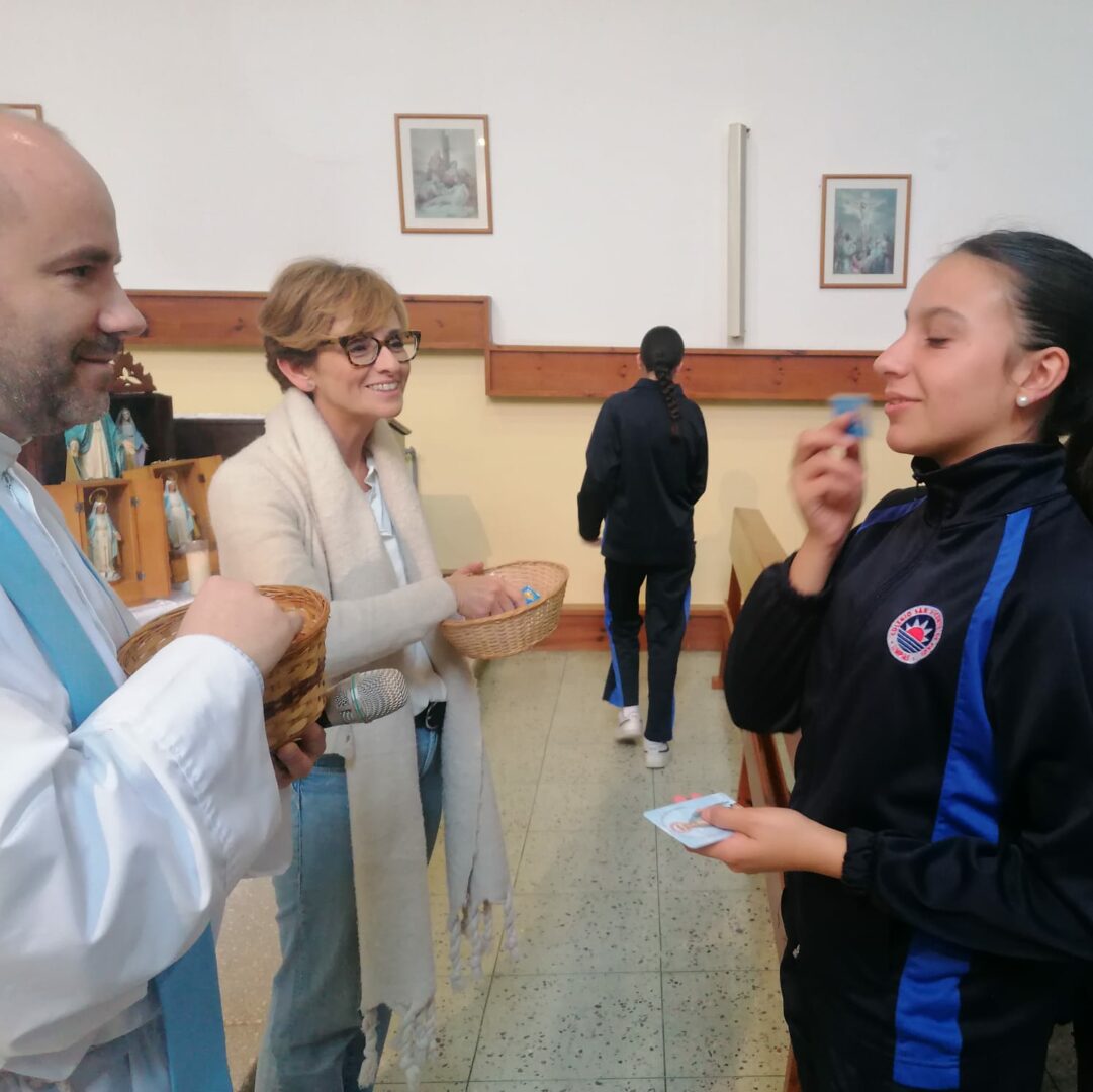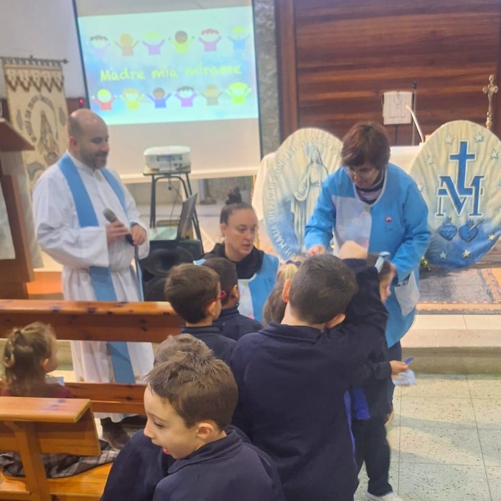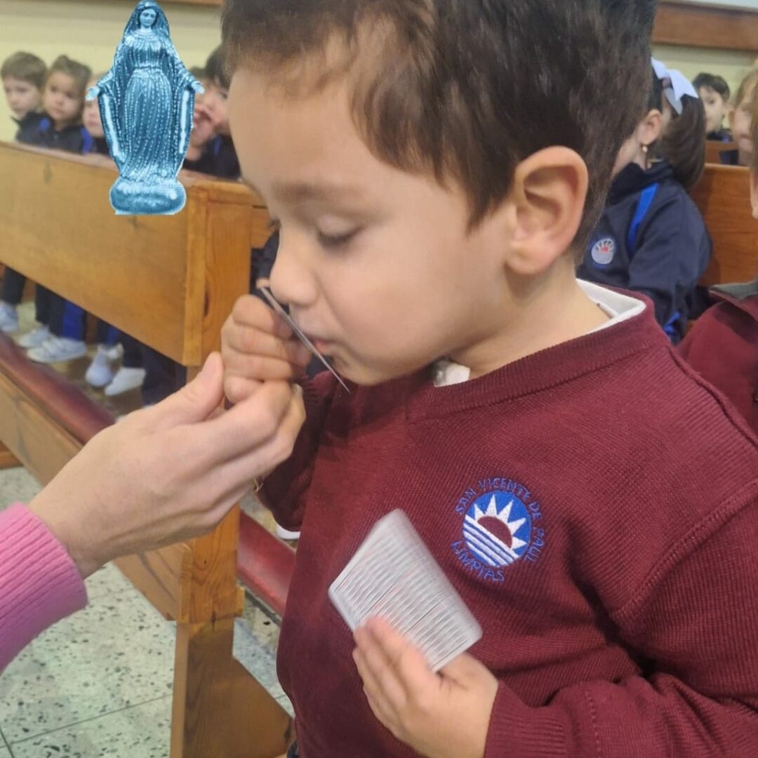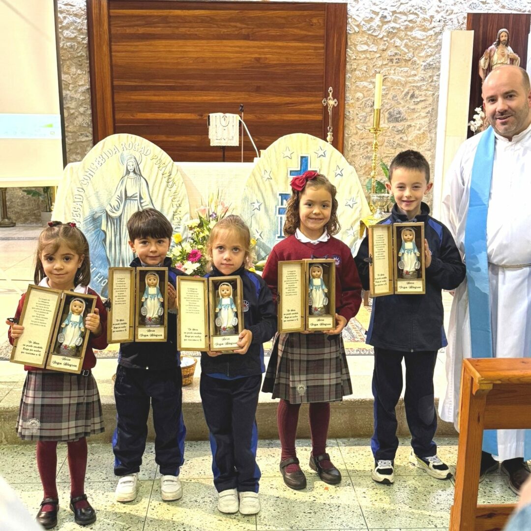 Todos los que somos parte del colegio llevamos la Medalla con mucho cariño y rezamos a María con devoción. Además, en la celebración, cada clase recibió su pequeña capilla portátil con la imagen de la Virgen para llevarla a casa y homenajearla en las familias.
