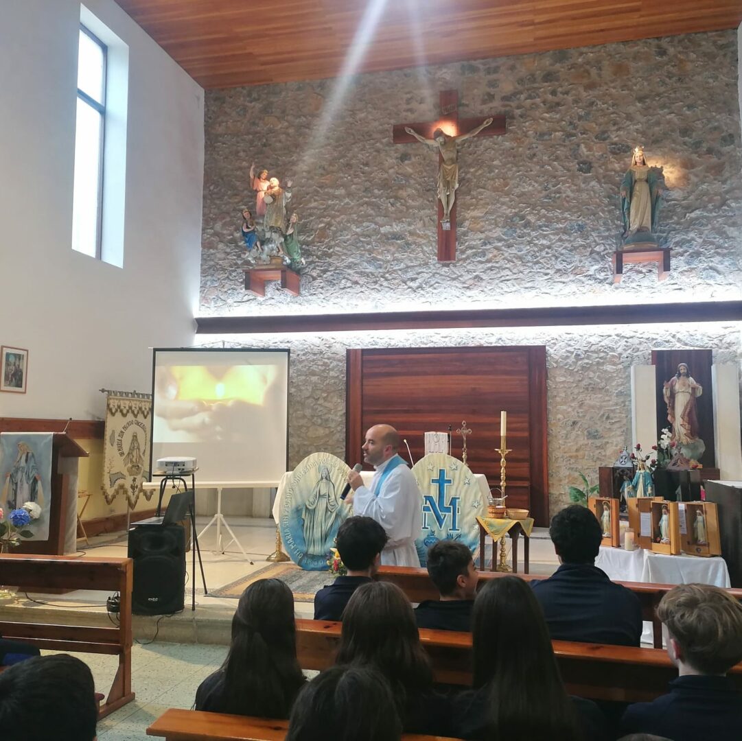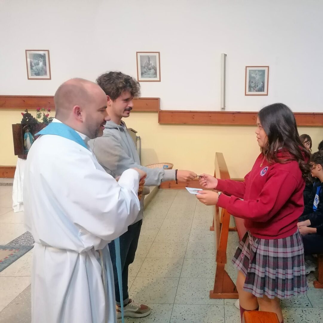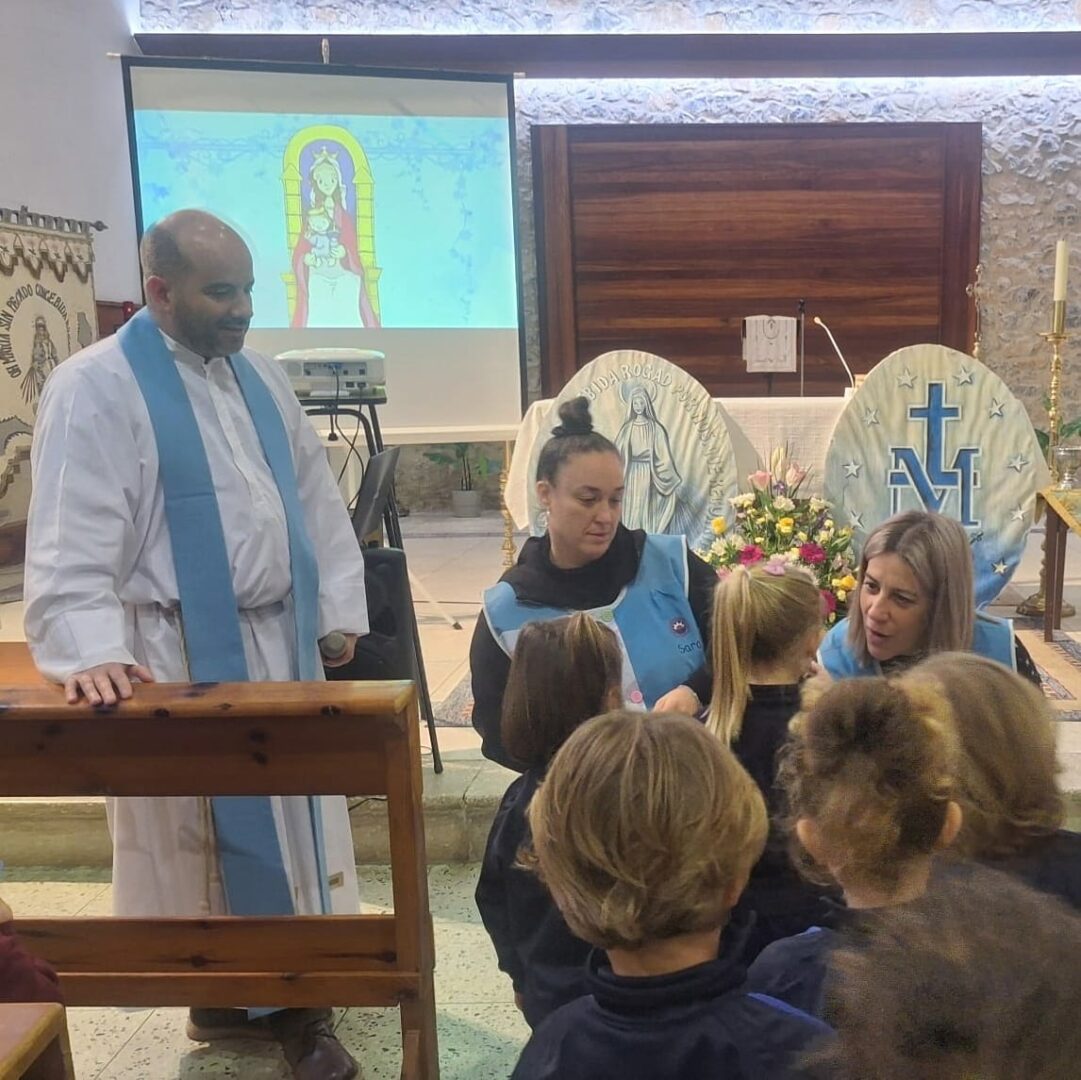 Todos los que somos parte del colegio llevamos la Medalla con mucho cariño y rezamos a María con devoción. Además, en la celebración, cada clase recibió su pequeña capilla portátil con la imagen de la Virgen para llevarla a casa y homenajearla en las familias.