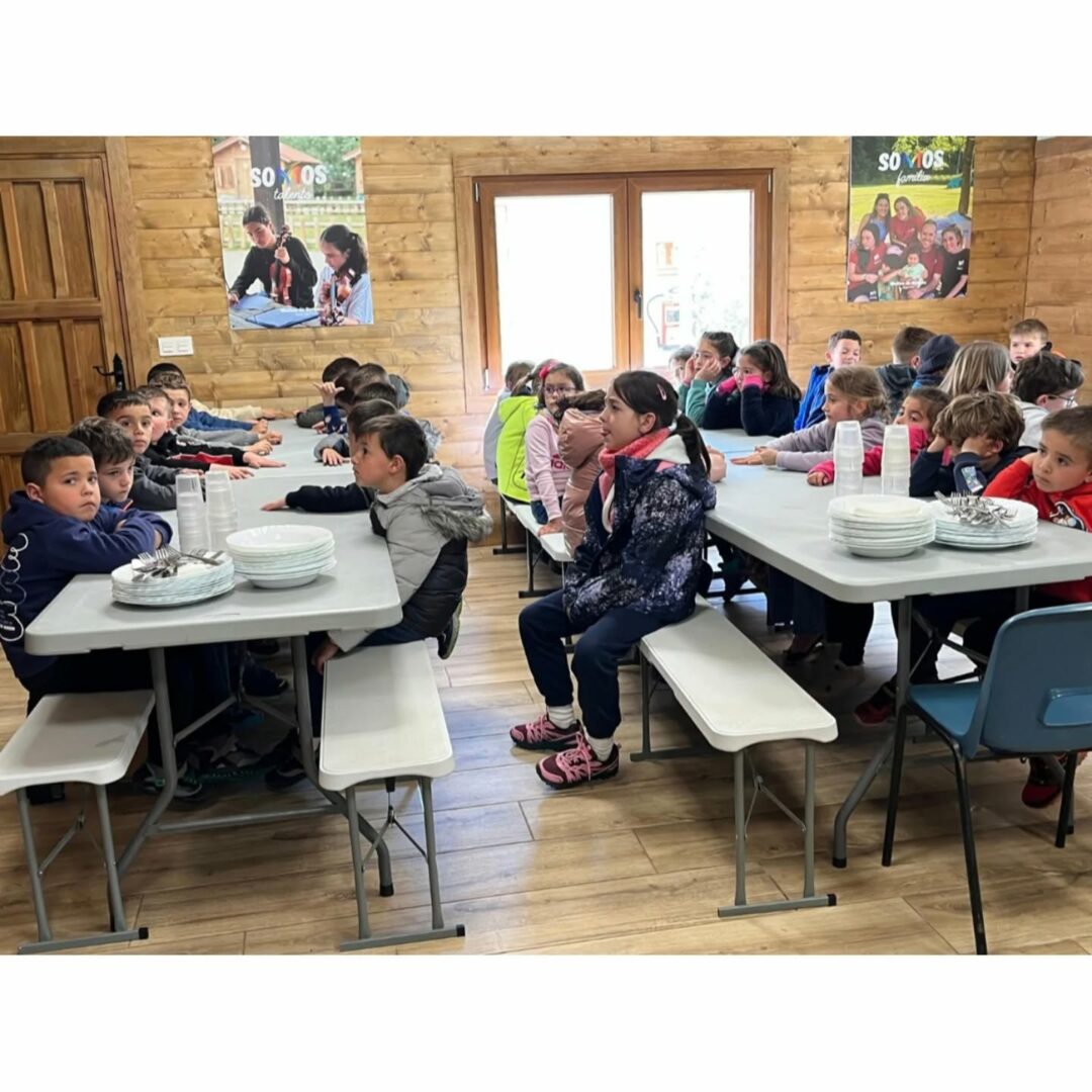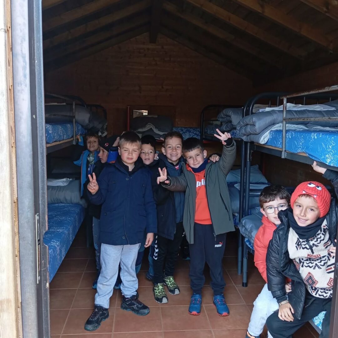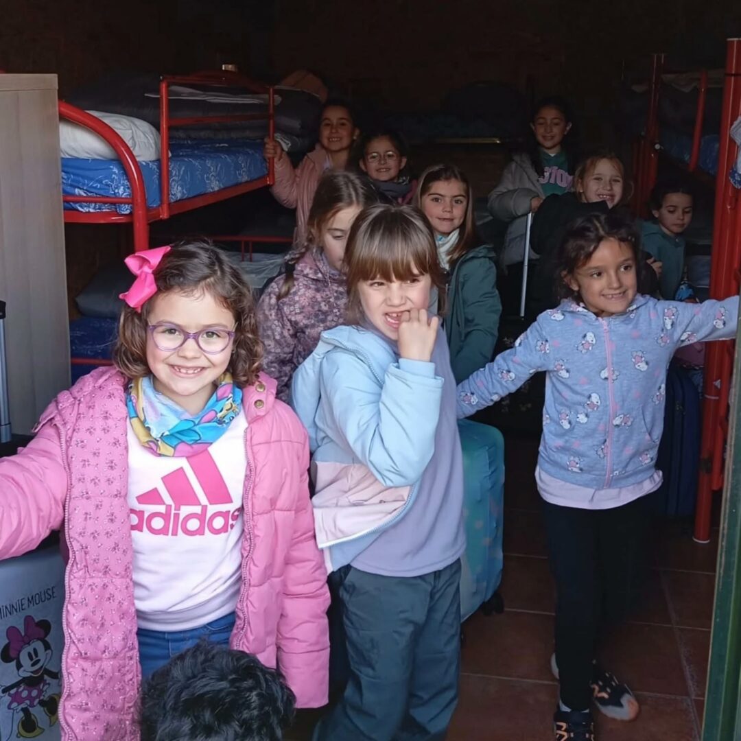Los alumnos de 1° y 2° de PRIMARIA ya están disfrutando de su viaje escolar de dos días a «El Molino de Butrera» en Burgos, una instalación de actividades y alojamiento rural que se encuentra en en el Monumento Natural de Ojo Guareña. Ya están felizmente instalados en las cabañas de madera del albergue, en habitaciones con literas.