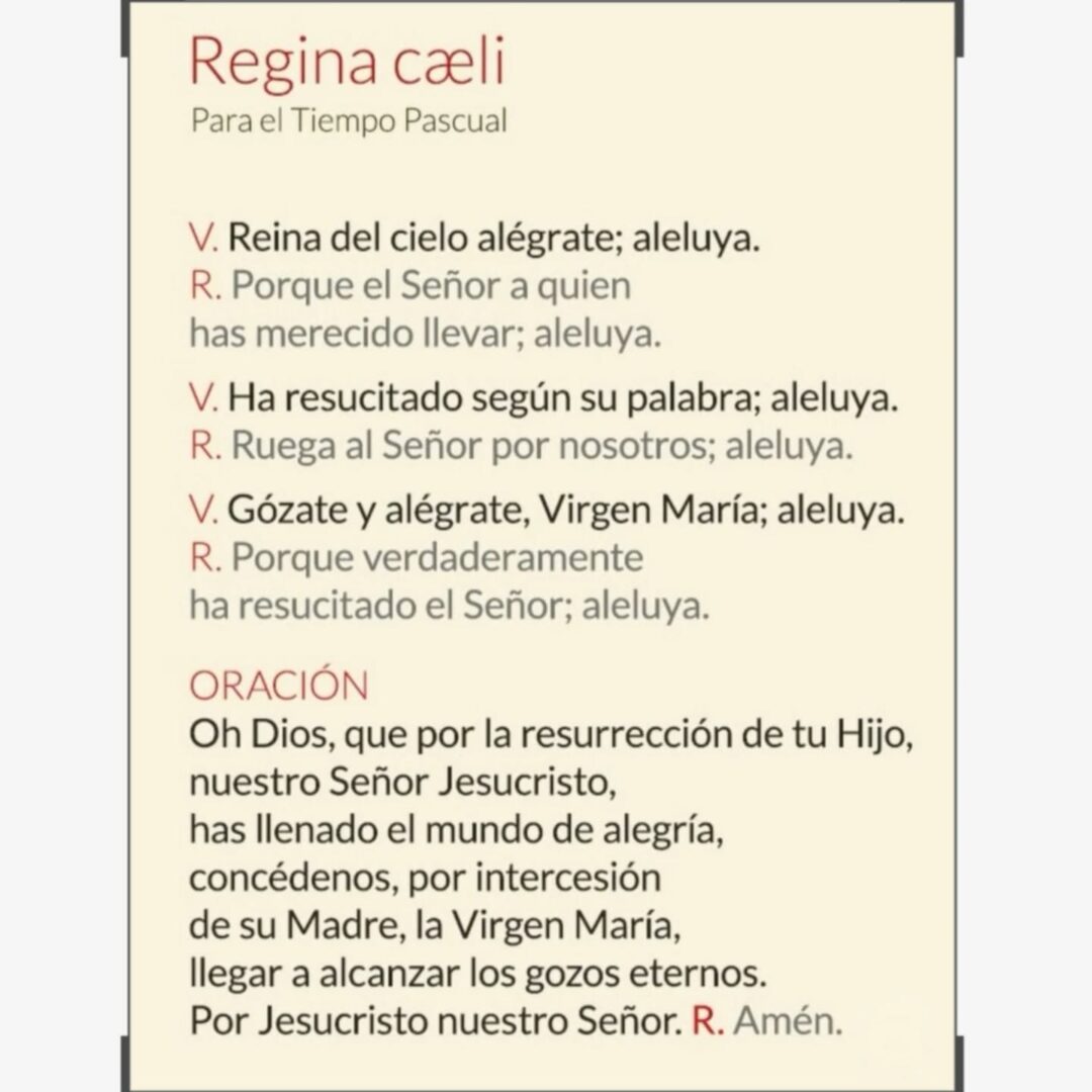 ¿Sabías que durante el Tiempo Pascual, la Iglesia no reza el Ángelus, sino el REGINA COELI (Reina del Cielo)?