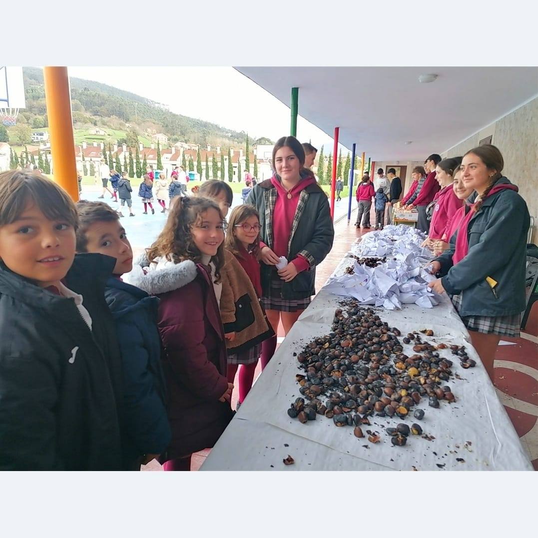 El Día de la Milagrosa lo terminamos con la tradición de la MAGOSTA cántabra, saboreando unas deliciosas CASTAÑAS ASADAS al calor de las brasas y deliciosos zumos. Todo ello acompañado de buena música para llenar el patio del colegio de ritmo, baile, alegría y comunidad. También descubrimos ADIVINANZAS de nuestra tierra: