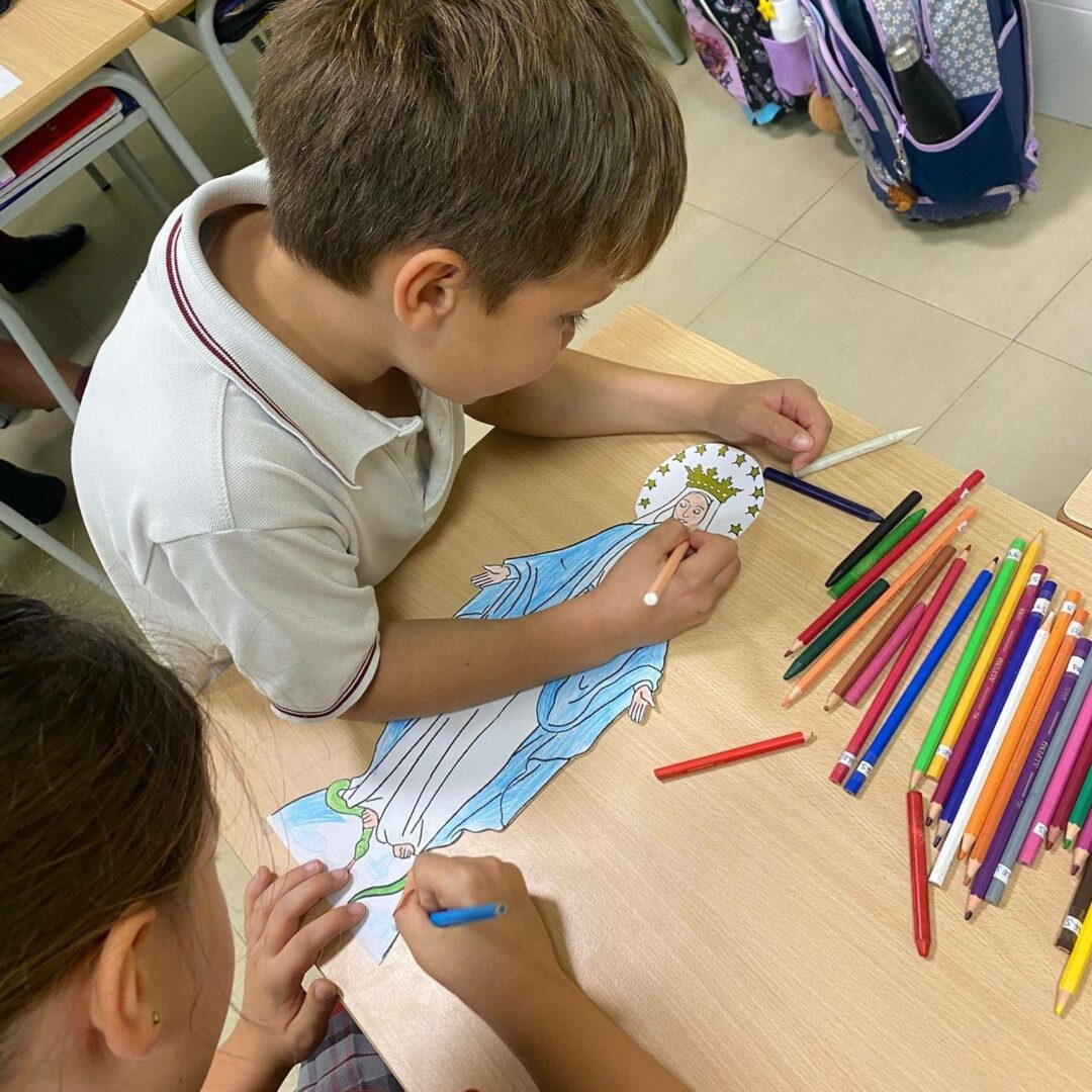 Los alumnos de 3° de Primaria ya han preparado en su clase un mural muy bonito mientras aprenden sobre la MEDALLA MILAGROSA, una de las devociones más extendidas en el mundo y a la que se atribuyen hechos prodigiosos.