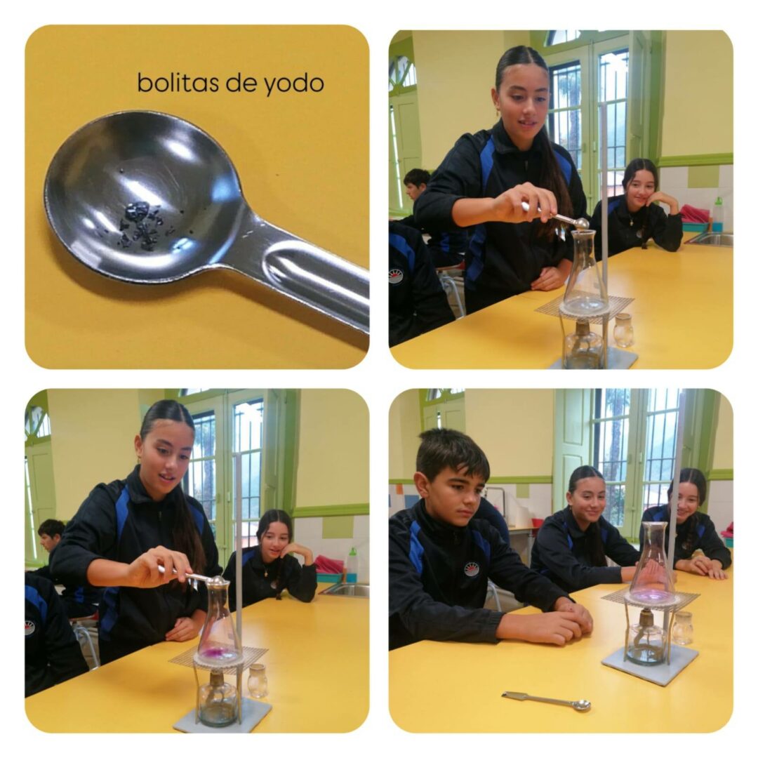 Hoy, la clase de FÍSICA y QUÍMICA de 2° ESO ha sido en el laboratorio. Los alumnos han realizado una práctica para visualizar la SUBLIMACIÓN DEL YODO. El yodo es sólido a temperatura ambiente. Al calentarlo, el YODO se sublima; es decir, cambia directamente de sólido a gas, sin pasar por el estado líquido. Ello se aprecia con la aparición de un llamativo color violeta.